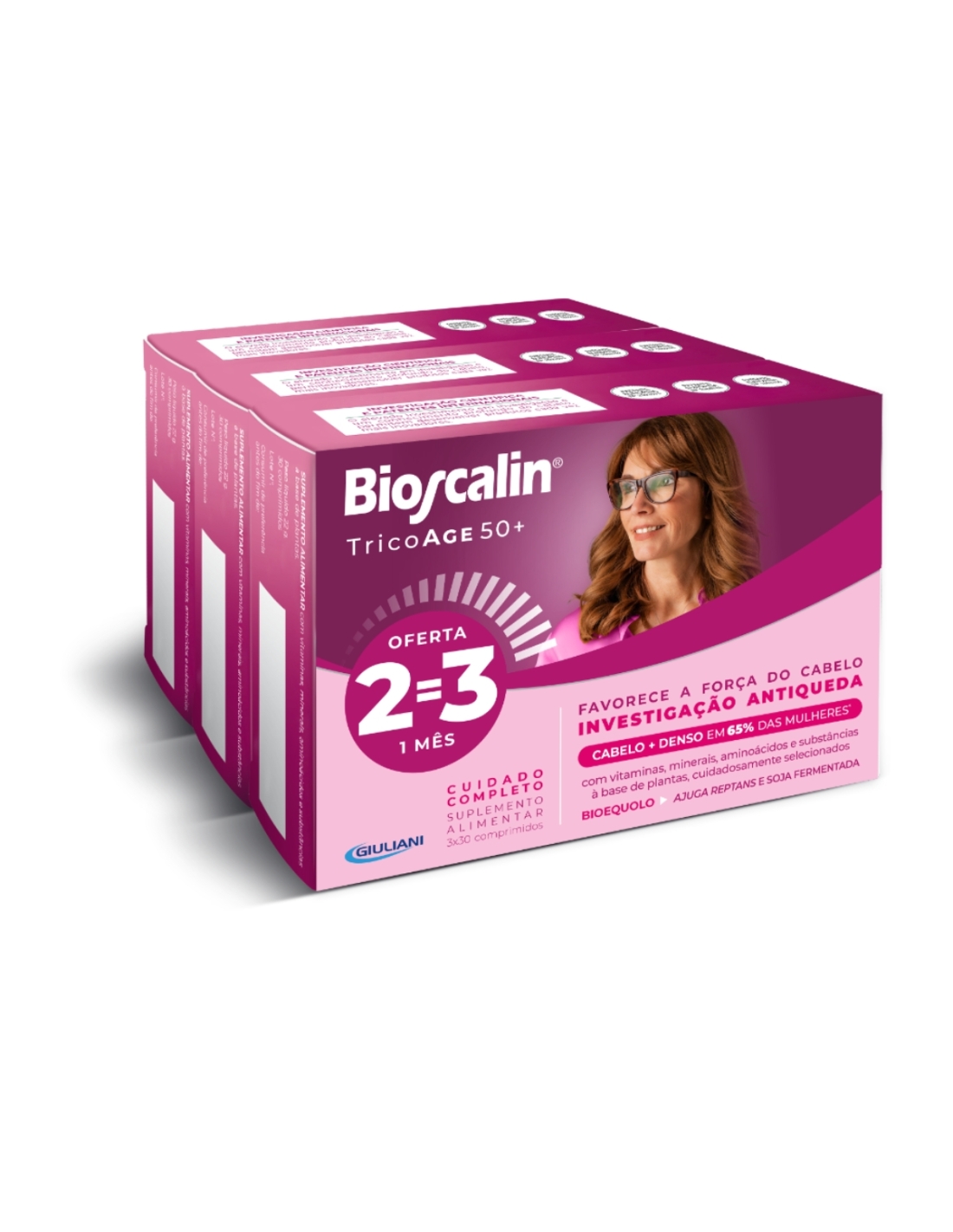 Com a utilização regular do Bioscalin Pack Triplo TricoAge 50, é possível obter cabelos mais fortes, saudáveis e volumosos. Este suplemento ajuda a combater a queda de cabelo, estimulando o crescimento de novos fios e melhorando a textura e brilho do cabelo existente.