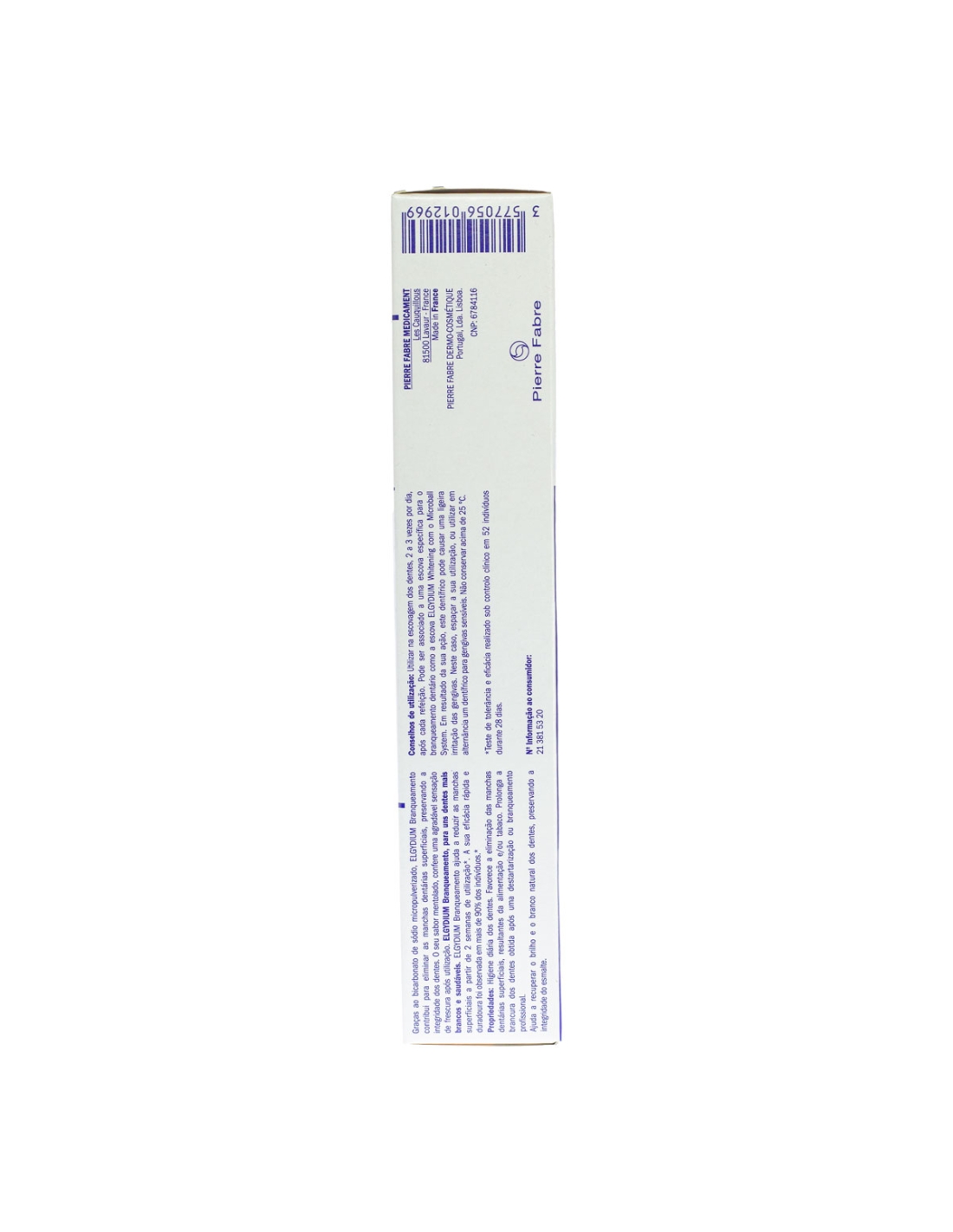 Elgydium Branqueador é uma pasta dos dentes com bicarboinato de sódio micropulverizado que efectua um polimento suave na superficie do dente. Remove manchas e branqueia.