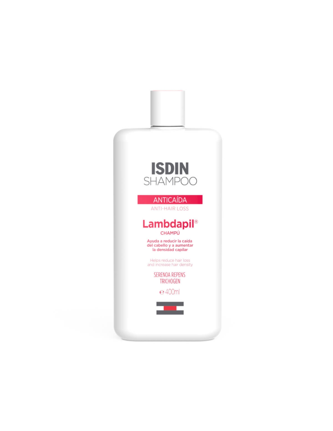 Isdin Lambdapil Champô Antiqueda tem uma textura suave com uma agradável fragrância. Formulado com Serenoa repens, complexo multiativo Tricogen, biotina, zinco e vitaminas que em sinergia ativam a microcirculação e estimulam o bolbo capilar, favorecendo o crescimento de cabelos saudáveis e vigorosos.