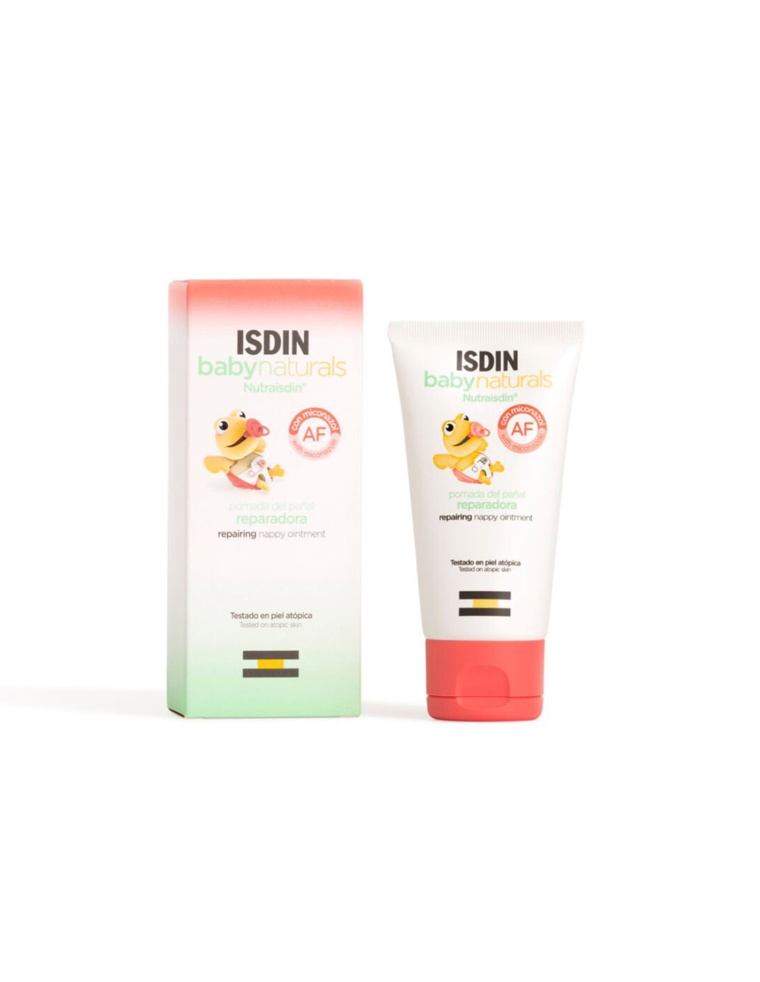 Isdin Nutraisdin AF Pomada Reparadora é uma pomada que ajuda a reparar e a aliviar a pele da zona da fralda. Com ação antifúngico (miconazol), ajuda a prevenir a proliferação de agentes infeciosos e repara a pele do rabinho do bebé. Pode ser utilizado após cada muda da fralda do bebé. Acalma a pele, repara e minimiza a vermelhidão. Isola e deixa um filme protetor sobre a pele, enquanto acalma e alivia entre mudas. Indicado para as situações de infeção, vermelhidão e irritação (eritema da fralda). Repara e acalma a pele fragilizada, ao mesmo tempo que a protege das agressões provocadas pelo contato com a urina, fezes e fricção das fraldas. Pode ser utilizado desde os 0 meses. Testado pediátrica e dermatologicamente. Para todos os tipos de peles, inclusive atópicas.