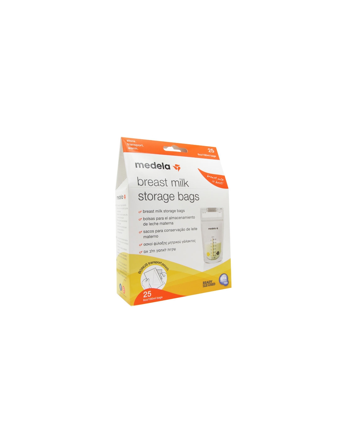 Fácil recolha de leite: extraia o leite directamente para dentro do saco, evitando o desperdício de leite. Compactos: ocupam menos espaço que os biberões para leite materno. Seguros: com parede dupla para uma conservação segura e prolongada. Pré-esterilizados: muito higiénicos.