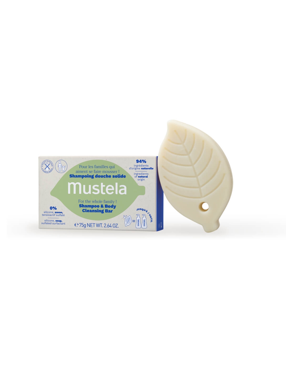 Mustela Champô Sólido é um cuidado 2 em 1 que limpa suavemente o corpo e o cabelo. Para toda a família a partir dos 3 anos. Adequado para grávidas.