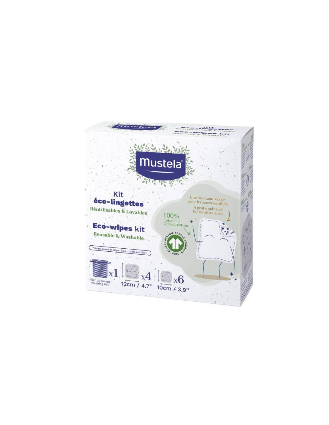 Mustela Kit de Toalhetes Eco permite adotar uma rotina de higiene ecológica e económica com os Toalhetes Eco Mustela de algodão bio. São toalhetes perfeitos para utilizar conjuntamente com a Água de Limpeza Sem Enxaguamento ou com o Linimento. Para higiene de rosto, mãos e corpo.
