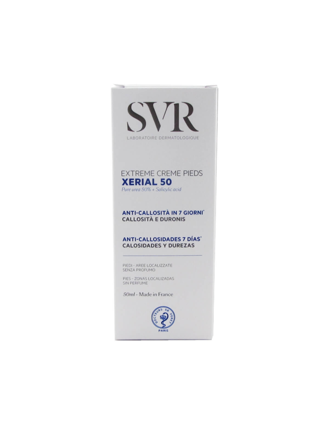 SVR Xerial 50 Creme Pés tem uma textura rica e nutritiva de fácil aplicação. Formulado com 50% de ureia com ação queratolítica que ajuda a nutrir e a amaciar as calosidades e manteiga de karité com propriedades nutritivas.